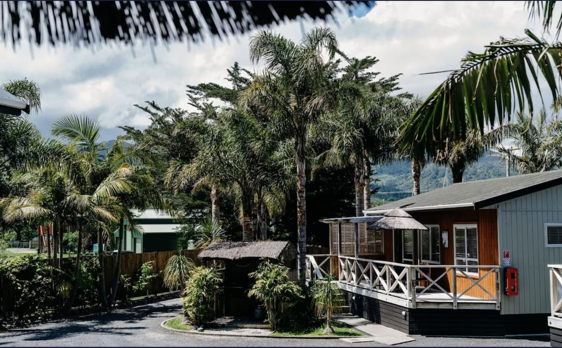 The motel complex is surrounded by large lawns with outdoor seating areas for everyone